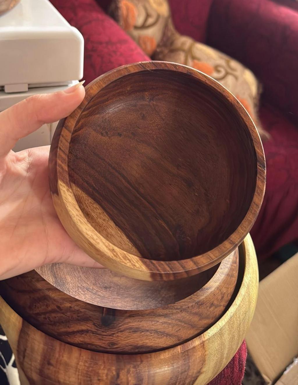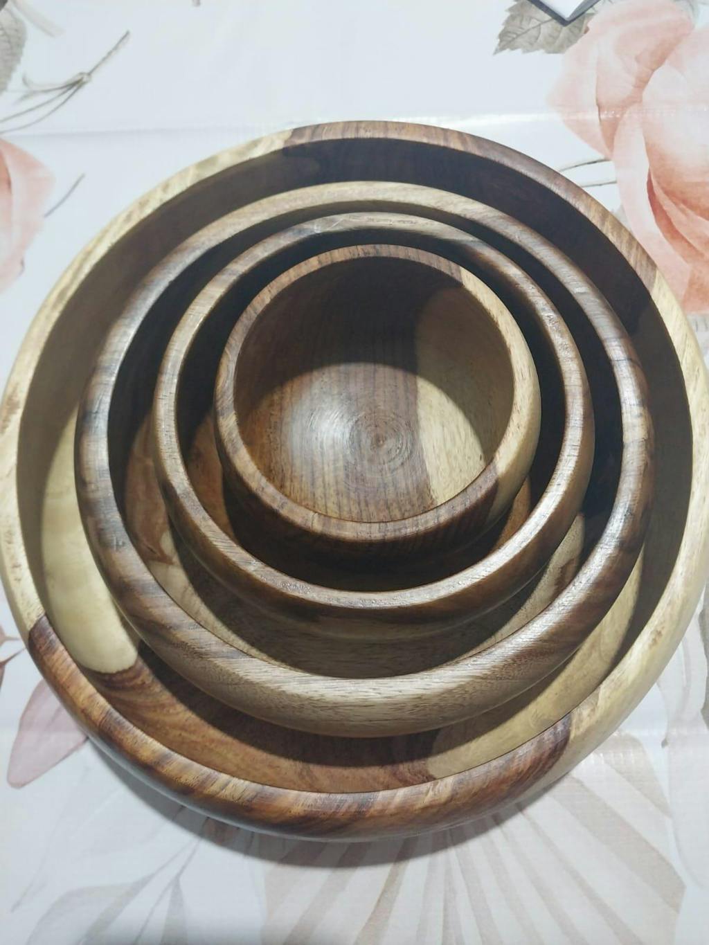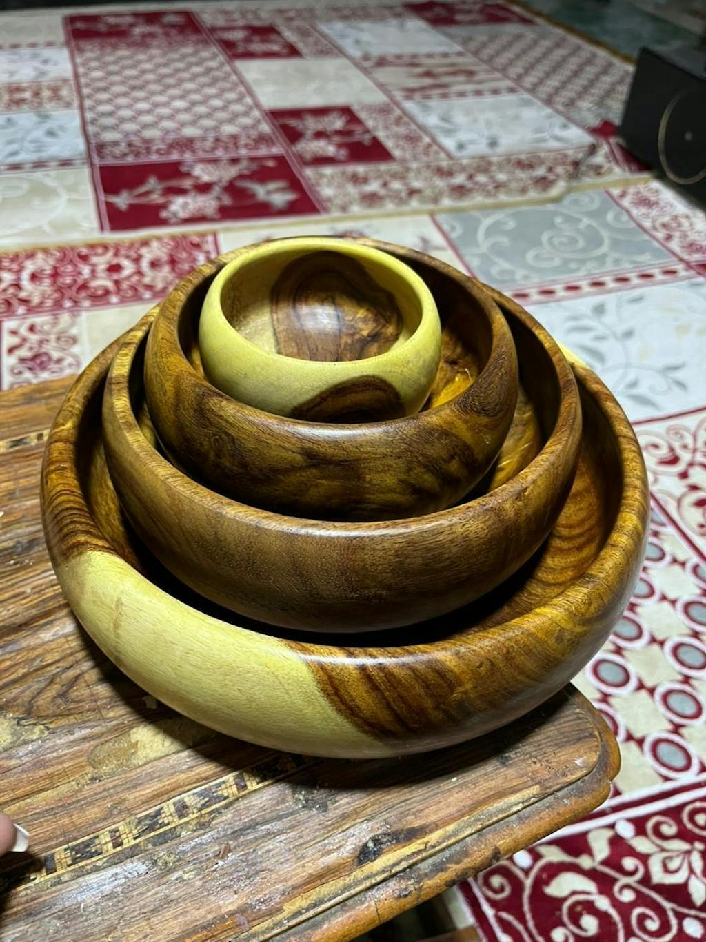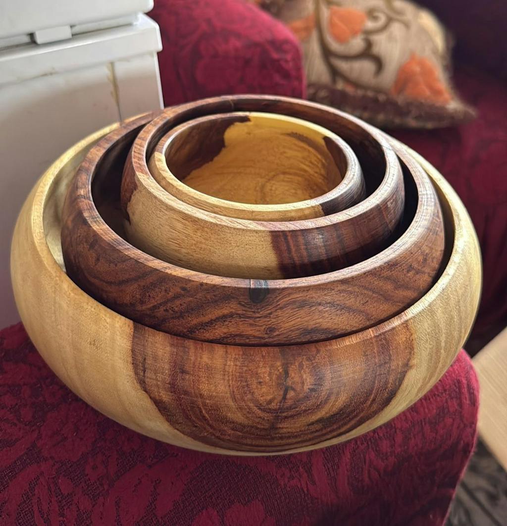 • A timeless set of 4 handcrafted wooden bowls bombeh carved in graduated sizes (10 cm, 15 cm, 20 cm, 25 cm)