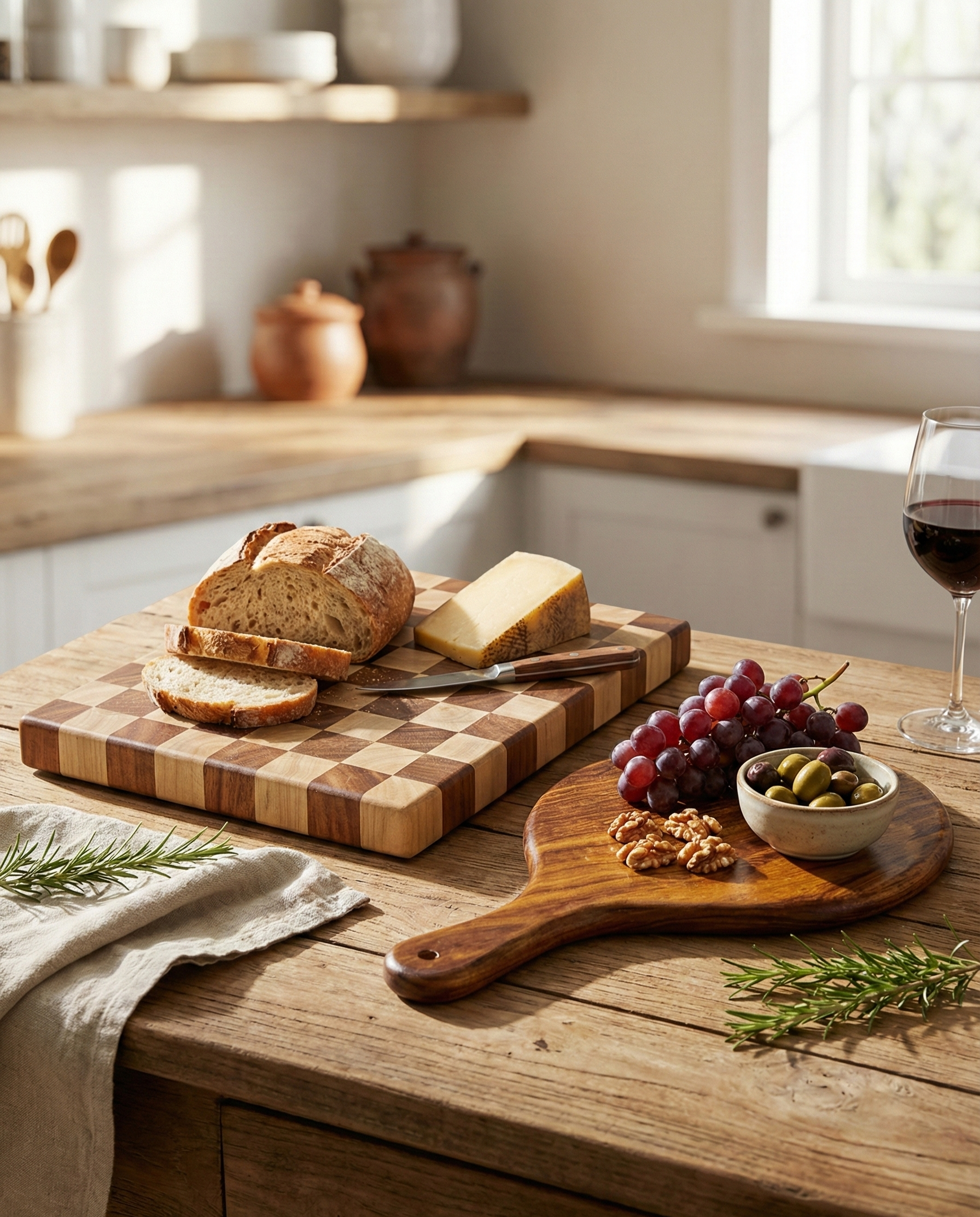 A refined pairing of two handcrafted wooden boards for everyday prep and effortless serving. From the kitchen to the table, this versatile set blends durability with organic design.