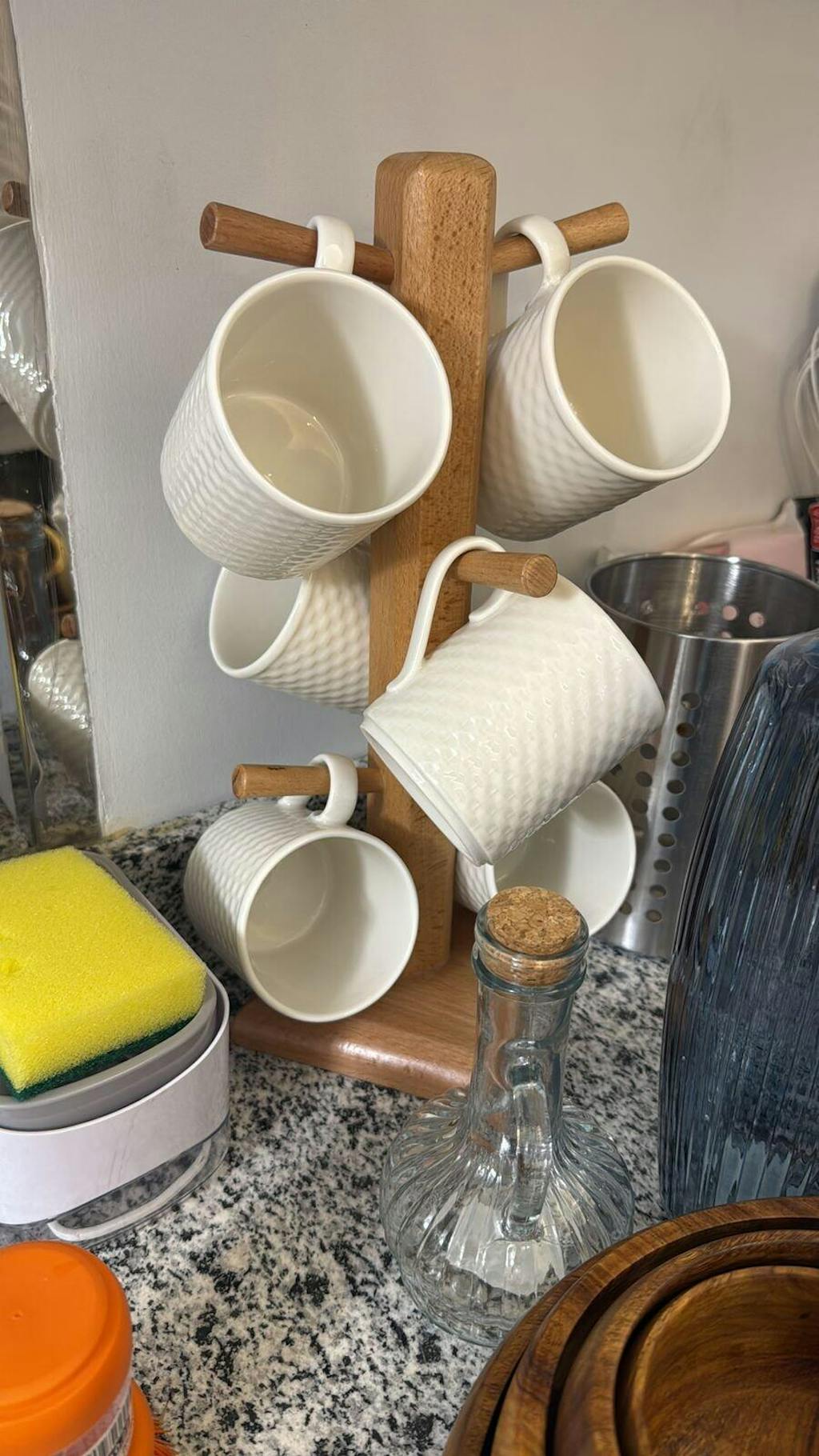 A sleek wooden stand designed to neatly organize your mugs while adding a natural, clean touch to your kitchen. Compact, practical, and perfect for everyday use.